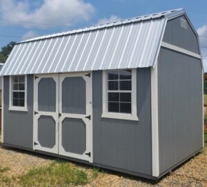 Our 10×20 and 12×16 Side Lofted Barns with Driftwood has Urethane siding , White colored trim, & a Galvalume metal roof. There’s 2 2×3 Windows with 2 36″ doors for 72″ easy access. It has 160 sq ft plus 80 sq ft in the lofts, which totals 240 sq ft. Listed @ $5195 (Plus Tax), discounted $259.75 (5%) to $4,935.25. Our Rent to Own pmts are $228.48 (36 months), $220 (48) & $196 (60). Including the 2 4x 10′ lofts, there’s 240 sq ft of storage space. (These Rent to Own Prices Include Taxes)