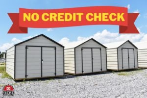 This 12×20′ standard metal storage shed (Shown above) features 2 3′ shop built doors for 6′ of easy access on the 12′ (End) side of the building. It’s listed for only $4105 plus tax, and the Rent to Own options begins at $190.05 for 36 months, $171.04 for 48 months, & $152.08 a month for 60 months (Plus Tax).