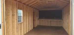 In addition, our flooring is designed and warranted specifically for sheds, from Louisiana-Pacific, we feature **LP® ProStruct® Flooring with SmartFinish®, featuring a durable overlay for a beautiful, professional-grade appearance. As a result, it has no knots or voids. It’s a welcome change from building with traditional plywood flooring. In addition, unlike plywood shed floors, our LP® ProStruct® Flooring with SmartFinish® is also treated with the LP® SmartGuard® process. Above all, our flooring is longer-lasting in a variety of climates & weather.