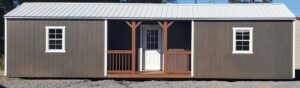 Side Cabins come standard with a 4′ porch on the side of the building, but is available with variable sizes & placement options. Three 2 x 3 windows come standard. One 9-light, 36″ pre-hung door. The Cabin comes with plenty of head room with standard 8 ft walls (exterior measurement).