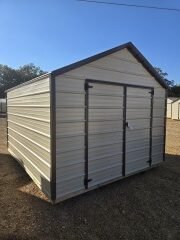 Our 8′ wide Best Value Style Storage Sheds have one 48″ shop built door on the front side of the building. Our 10 & 12′ wide buildings have two 36″ shop built doors in the front, or the wide side of the building. The Siding & Roof is Light Stone Metal, along with a Burnished Slate Trim. They offer a lot of storage space at a fantastic price. They’re built with 2 x 4 studs, 29 gauge metal siding and roof, & 16″ centered 2×4′ floor joists set into 4×6″ pretreated notched skids. These buildings are priced with 2 2×3 windows, but they’re not required. Without ’em, the low price on this building will save you even more money!
